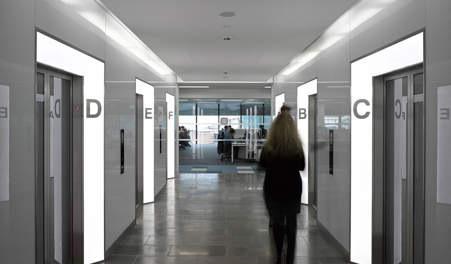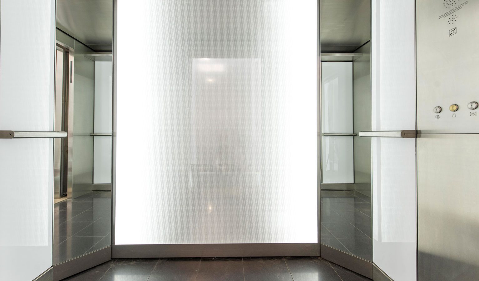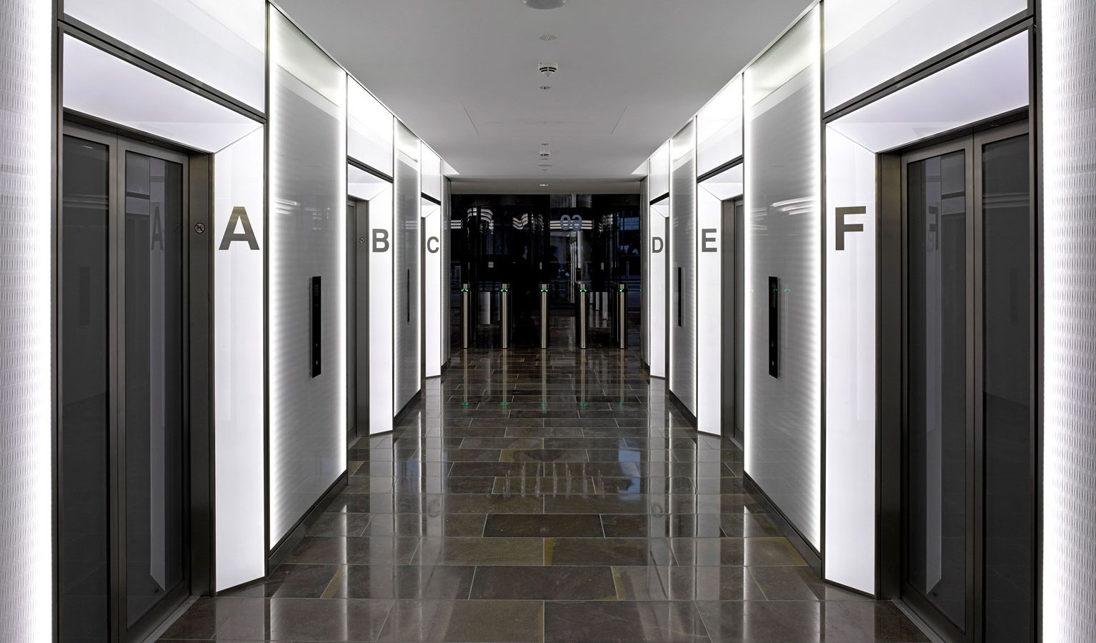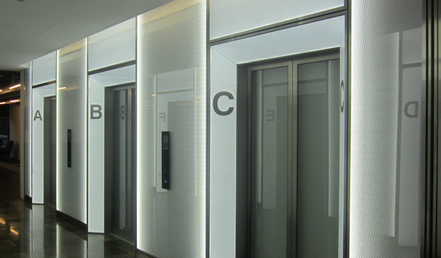 Working alongside the main contractor Balfour Beaty, Evans Turner installed the edgelit laser scored lobby panelling on the Ground floor lobby, illuminated splayed architraves to every lift entrance and six passenger lift interiors.