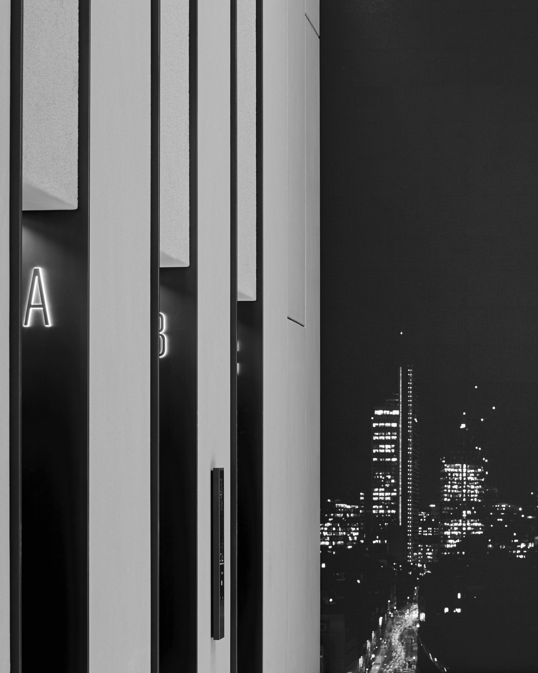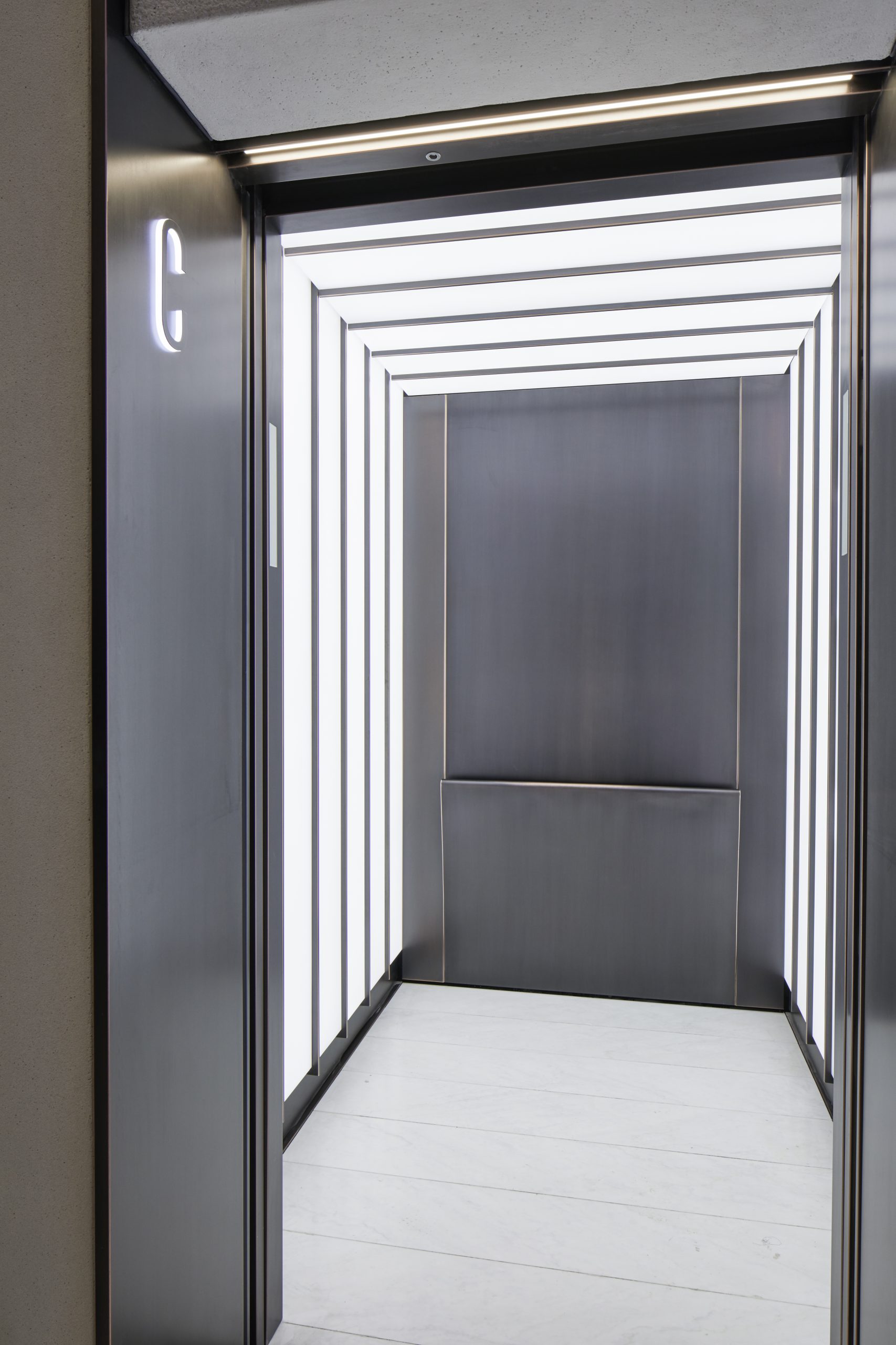 The innovative design of the lift interiors combines Illumapanel® walls and ceilings with bronze toned copper fins and sculptured bronze handrails. Our scope included bronze architraves incorporating Illumaletter® lift identification, bronze lift doors and speed gate bronze cladding.